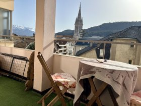 Il se compose d'un hall avec placard, une pièce de vie de 28 m² ouverte sur une loggia plein sud, cuisine indépendante aménagée avec cellier, 2 chambres dont une avec placard et loggia, salle de bains, WC, grande cave.