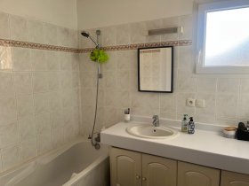 hall entrée, cellier, cuisine aménagée, séjour donnant sur terrasse. 2 chambres. une salle de bains.