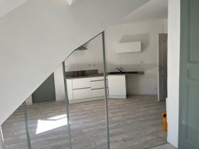 GAP 26 rue Carnot, bel appartement de type 2 de 41.50 m2 et de 48 m2 au sol situé au 3 eme étage sans ascenseur cuisine ouverte sur pièce de vie. 5cuisine avec hotte plaque de cuisson) une chambre avec placard. un coin bureau. une salle de douche avec wc. chauffage individuel électrique. exposition sud. bien libre le 28.12.2025.